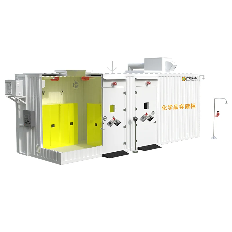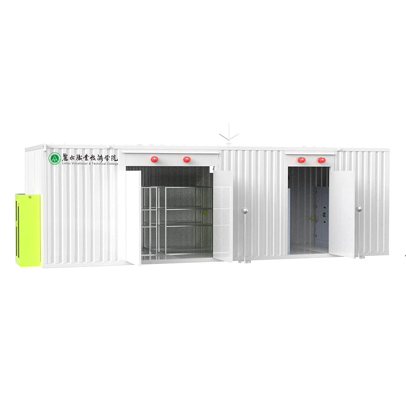 Kanpoko aldi baterako biltegiratze armairuaren egiturak kutxa, softwarea kudeatzeko sistema, IoT hodei kudeatzeko plataforma, tximista-babesa eta lurrerako estatikoen aurkako sistema, definizio handiko leherketa-froga kontrolatzeko sistema, leherketa-froga elikatze-sistema, tenperatura eta hezetasun-sistema etengabea, leherketa-froga argiztapen-sistema, monitorizazio eta alarma sistema autonomoa, suteen kudeaketa eta biltegiratze sistema adimenduna, korrosioaren aurkako sistema, estaldura sistema, aireztapen eta ihes sistema, barne-sailkapena gasa arazteko tratamendu-sistema, babes pertsonaleko sistema, garbiketa-hornigaien erreserba-sistema, presio automatikoa arintzeko sistema, larrialdi-dutxa eta beste sistema-unitate batzuk. Erabiltzaileek sistema funtzionala hauta dezakete Guangsheng Teknologiak emandako konfigurazio-eskakizunen taularen arabera.